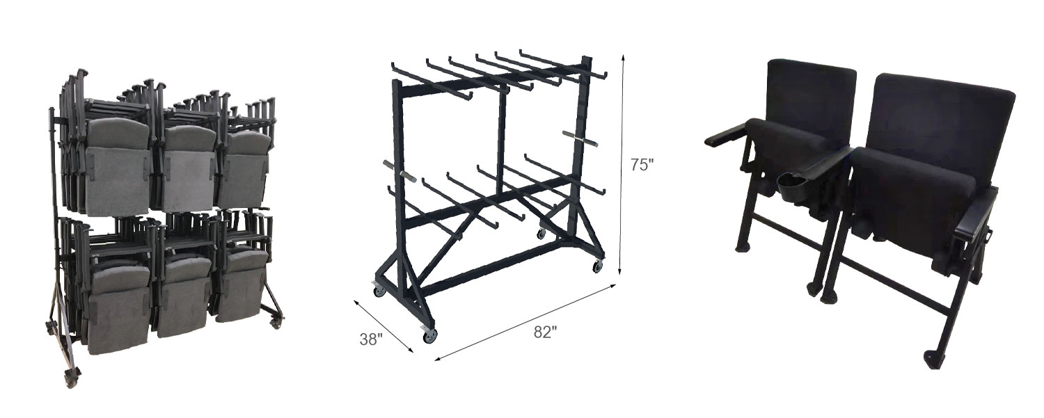Move and store up to 24 alges portable audience chairs.