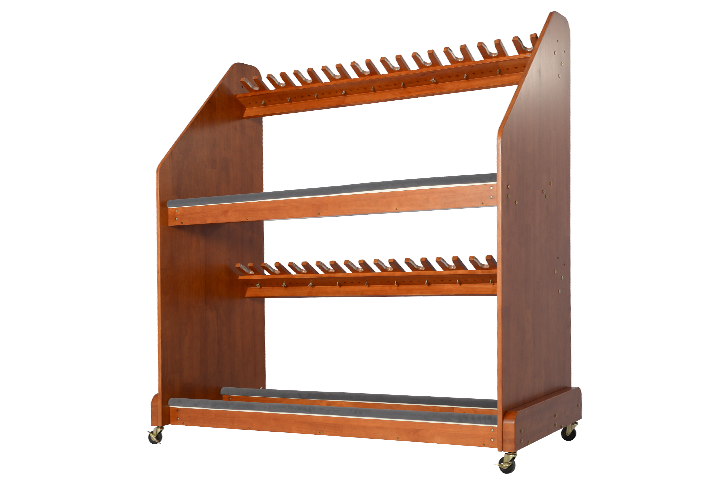 Each rack is designed with solid supports for maximum protection cradling every individual instrument, with ergonomic soft lines and a beautiful wood veneer finish. Strong easy gliding swivel castors also make moving your instruments in and out of doorways and onto transport effortless.