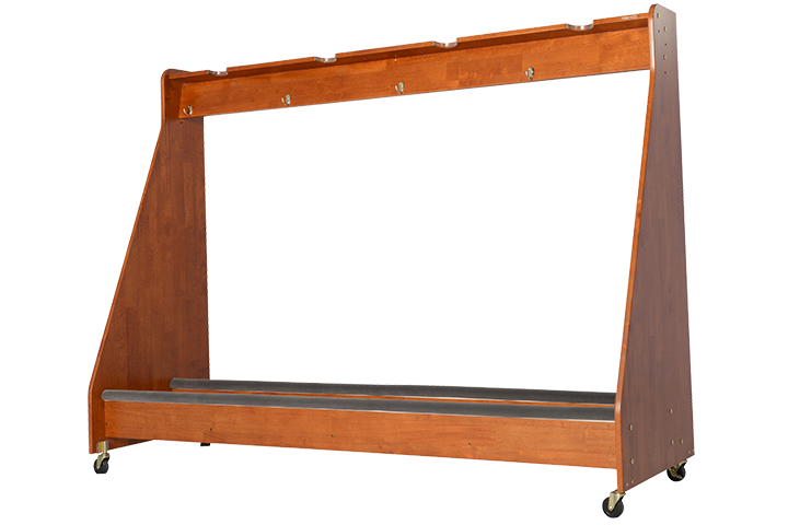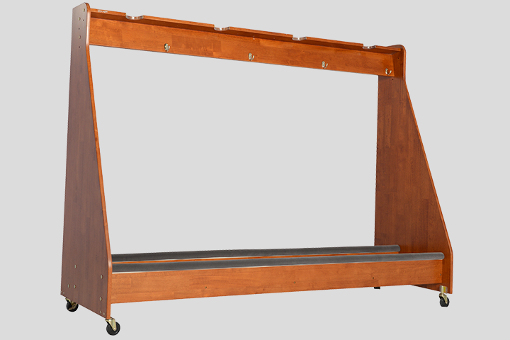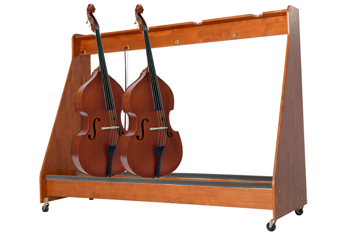 This sturdy and elegant rack will store up to 4 Double Bass instruments upright at one time securely protecting your investment. String bows can be hung on the rack for reliable and quick access