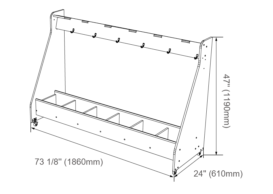 Dimensions: 73 1/8''(w) x 24''(d) x 47"(h) (186cm x61cm x119cm)