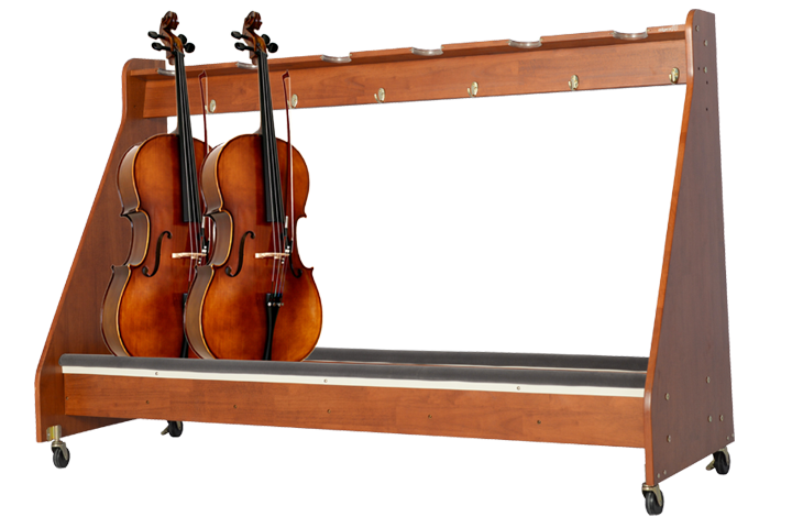 An avant-garde method to safely store and transport up to 6 Cellos. Each cradle protects and supports your instrument protecting from damage and expensive repair. With a smooth gliding frame movement becomes effortless.