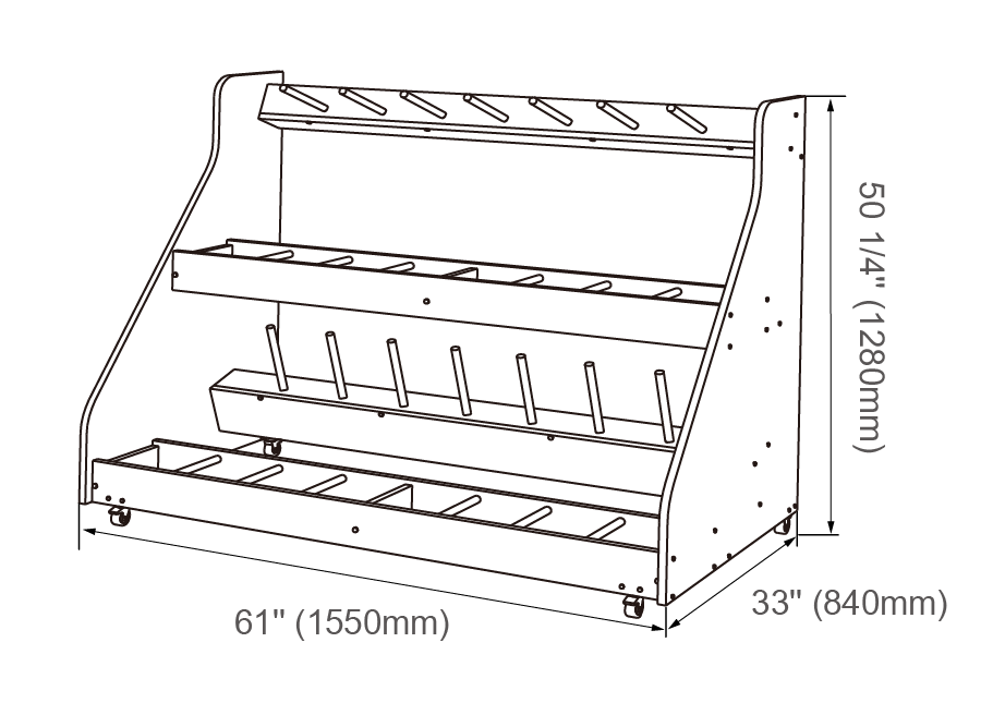 Racks have 2 1/2" (6cm) swivel casters with heavy duty rubber wheel for easy transport.