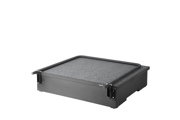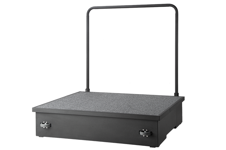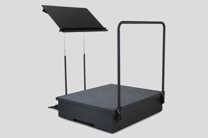 A high-quality handmade podium entirely designed for conductors and music leaders. Alges Signature Podium has a touch of class with a carpeted deck, detachable handrail, and integrated wheels for ease of transport and storage. The Signature Podium can be used with or without a chair.