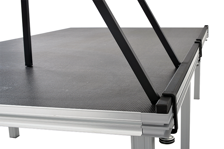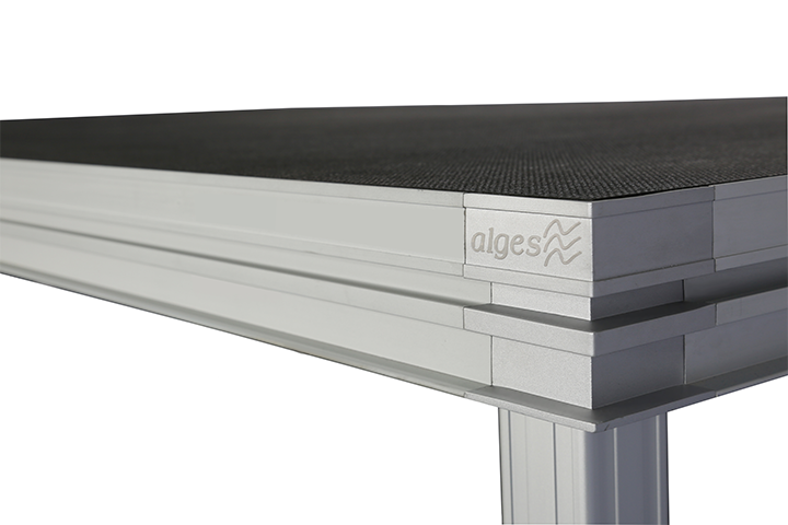 Alges comprehensive all-in-one platform stage allows users to create multiple layout options and configurations. The deck size and leg height are fully customizable making this one of the most popular and cost effective platform systems on the market.